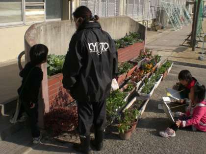 用務員さんに,学校の花の名前を聞いたり,うさぎのクロちゃんや合鴨のくぅちゃんの様子をじっくり見たりしました。