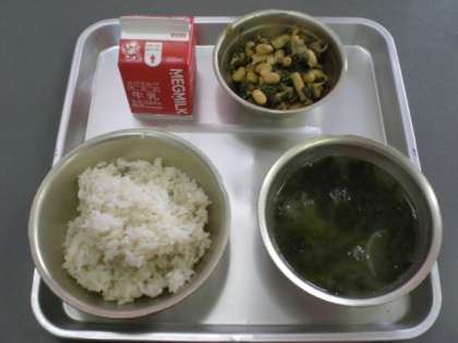 ご飯・牛乳・肉みそいため・わかめスープ