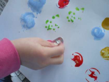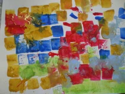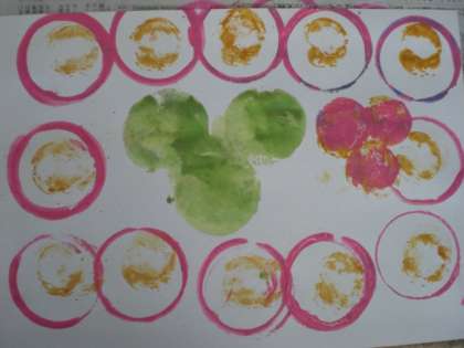 絵の具の量やスタンプの押し方なども考えながら,作品をつくっていきました。