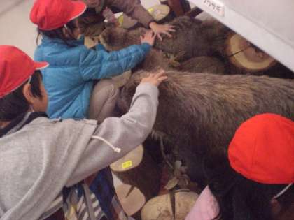 資料室の中のものを見て回りました。キツネやクマのはく製を触ることもでき,子どもたちは大喜びでした。