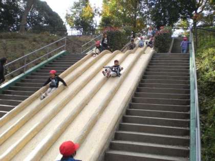 北堀公園の長〜い滑り台に子どもたちは興味津々!