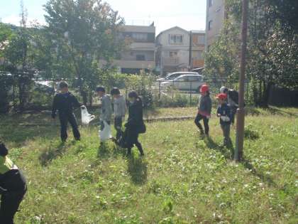 納所公園から学校への行き帰りも、4年生が2年生をしっかりとリードして歩くことができていました。