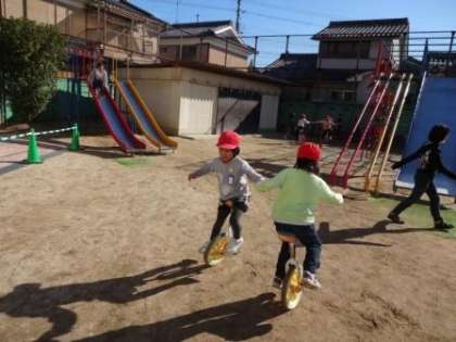 今日の昼休みのワンシーン。。。いつの間にか一輪車が上達していました。空宙乗りやメリーゴーランドなどとっても上手になっていました。