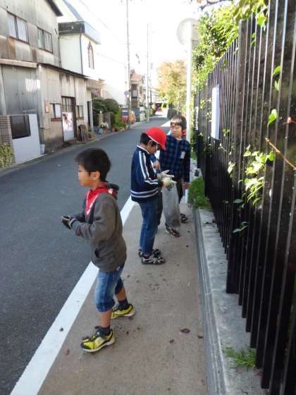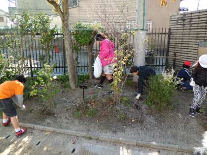 3年生と一緒に学校のグラウンドや玄関の清掃活動をしました。後から後から落ち葉が落ちてきて…。みんなでたくさんの落ち葉を拾いました。