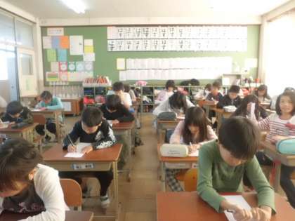 人権月間にむけて、4年生は人権書道に取り組みました。