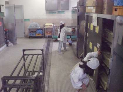 自分たちで給食室の中から,食管をとっていきます。