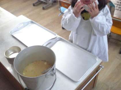 熱いものは担任が入れて,子どもたちが運びます。