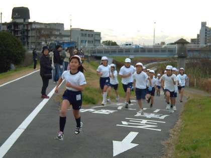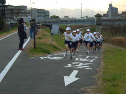 スタートしたら元気いっぱい,一人一人が目標に向けて精一杯走りきることができました。1500mの完走,よくがんばりました。