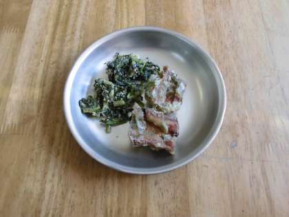 味噌汁     ちくわのいそべ揚げ    大根葉のごま炒め