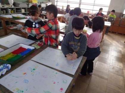 1回目の時よりもみんなたくさん材料を用意して,工夫しながらぺたぺたしていました。
