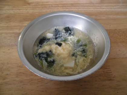 かき玉汁 ひらてんの煮つけ 三度豆の胡麻煮