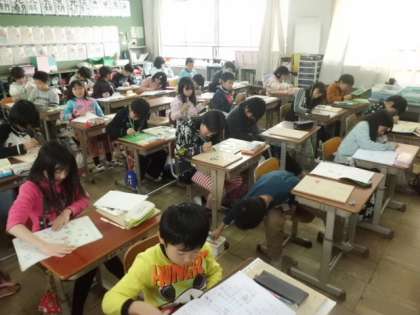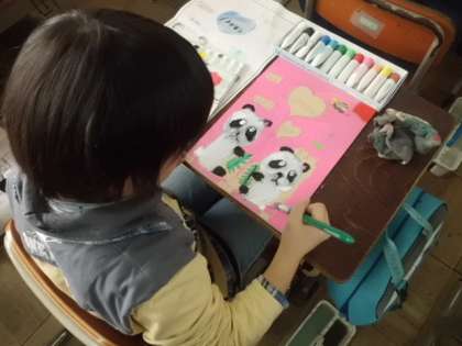 早い人は、もうすでに絵の具で色付けの作業まで進んでいます。