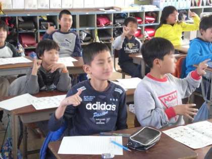 「おはよう」「ありがとう」「飛行機」みんな楽しくたくさんの手話や指文字にふれました。