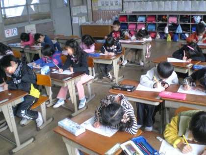 1年生では,木曜日の5校時に「のびのびチャレンジ」をしています。主に漢字テストをしていますが,今日はその様子です。