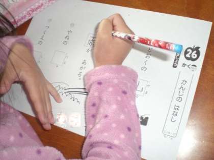 鉛筆の持ち方も様になってきましたが,まだまだ輪っかがつくれずに,鉛筆を握り締めてしまいます。もうすぐ2年生!かっこいい鉛筆の持ち方ができるようにがんばろうね!