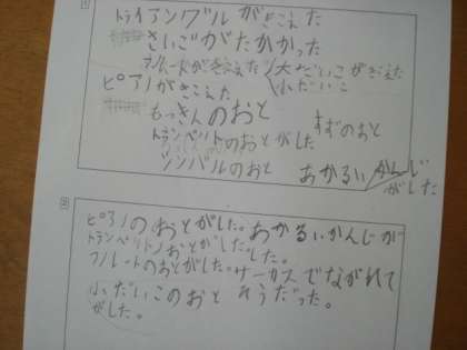 「あっ!ラッパの音や!」「ピアノの音も聴こえたで。」「聴こえた。聴こえた。」