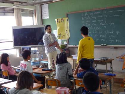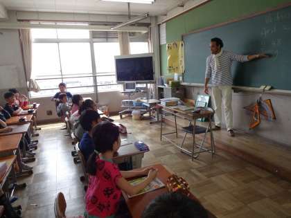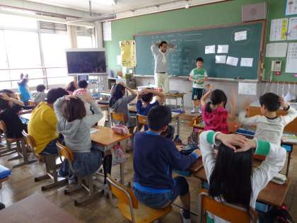 今日の外国語活動は アンガス先生と一緒。
