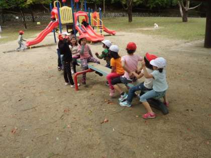 お弁当を食べた後,広場や遊具を使って遊びました。