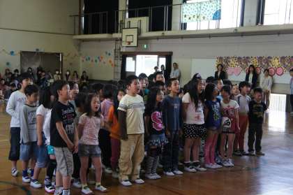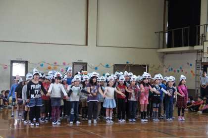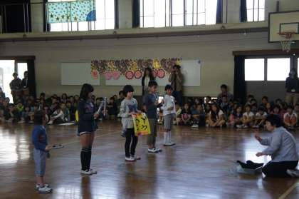 3・5年生,3組の出し物です。お祝いの言葉や演奏など,各学年からの出し物が続きます。みんな,一つ学年が大きくなって,1年生の仲間入りをお祝いしようと頑張っている様子がよく伝わってきます。