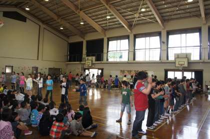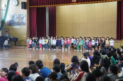 4・6・1年生の出し物です。1年生のお礼の校歌が大きな声が体育館に響いていました。