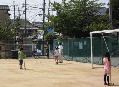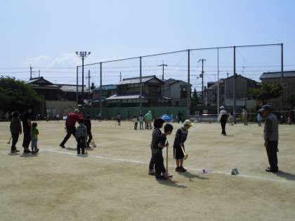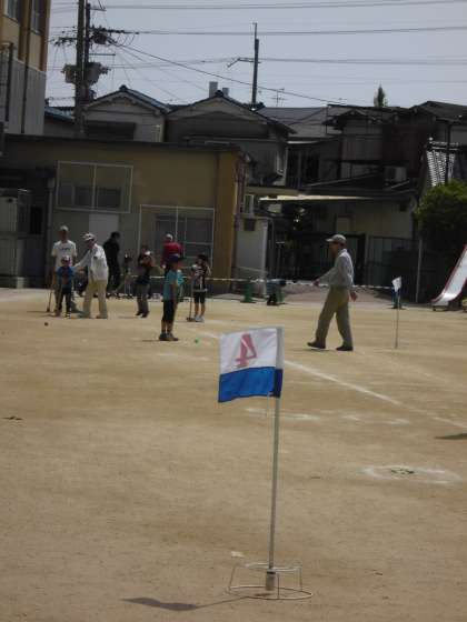 さわやかな晴天の下,第1回目のふれあい土曜塾「グランドゴルフ教室」が行われました。約40名の子どもたちが参加し,体育振興会のどんぐりクラブの方々に教えてもらい,グランドゴルフを楽しみました。はじめは,「どんな感じかな?」というような表情でしていましたが,やっていくうちにどんどん夢中になっていく子どもたちでした。