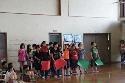 2組の学級目標です。「友情」「努力」「勝利」三つの言葉で表しました。素晴らしい一年にしましょう!