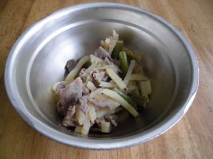 牛肉とじゃがいもの炒めもの       トマトとたまごのスープ