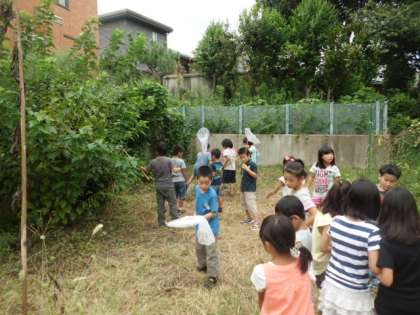 身近な場所にいる生きものについて話し合った後,実際に学校園に行き,どんな生きものがいるのか調べに行きました。