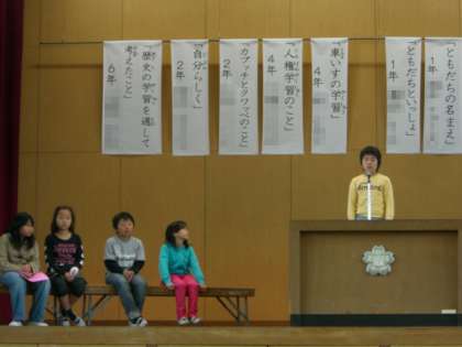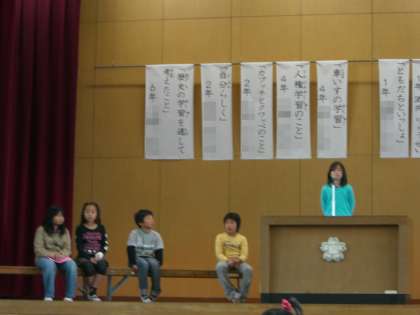 ぜん校のみんなの前ではっぴょうしました。