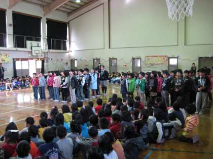 3年生は,今までの感謝の気持ちと卒業をお祝いする気持ちを6年生に伝えようと,歌詞とメロディにみんなの思いを込めて,「思い出のアルバム」の曲を歌とリコーダーで贈りました。