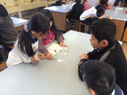 試験管にゴム栓をして,温めたり冷やしたりするとどうなるのか実験をしました。試験管を温めると「ポンッ」とゴム栓が飛んで,子どもたちは驚いていました。また,手で温めても飛ぶと発見している子もいました。これからの授業の中で,なぜそうなるのかを学習していきます。