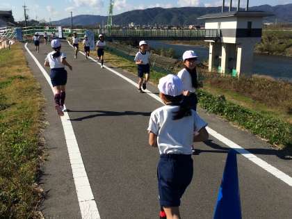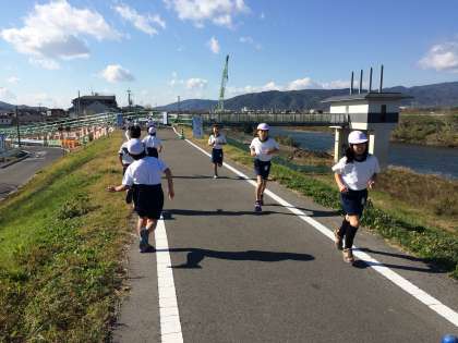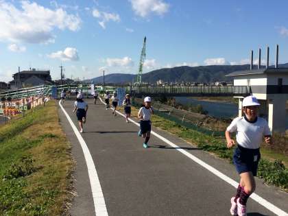 持久走記録会にむけて河川敷へ試走に行きました。