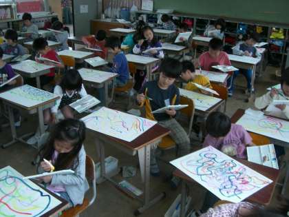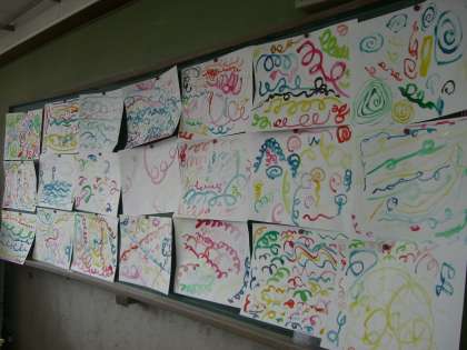 絵のぐをつかって、画用紙いっぱいにたくさんの線をえがきました。
