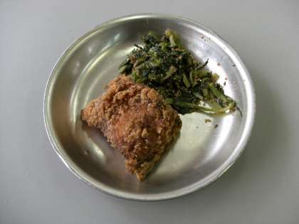 さばの竜田揚げ 大根葉のゴマ炒め みそ汁