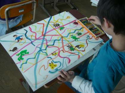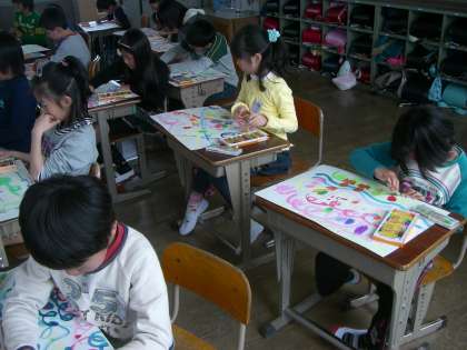 子どもたちがえがいた楽しいせかいで、お話ができました。