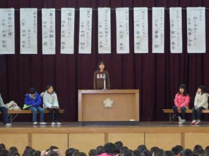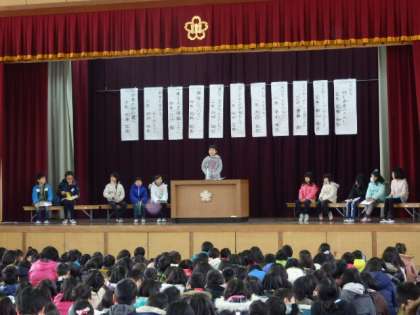 2月12日(木)の3時間目に全校人権集会が行われました。4年生は障害・福祉をテーマに作文を書き,代表者がしっかりと思いを伝えてくれました。この集会だけにとどまらず今回自分が考えたことを今後の生活に活かしていってほしいと思います。