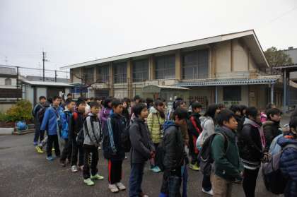 朝7時15分。早い集合でも,だれも遅れることなく集合できました。