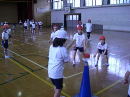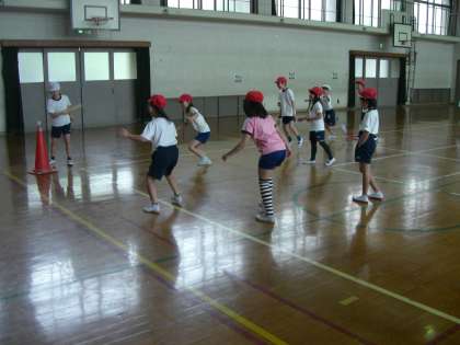 雨がつづいたので、今日は体育館でしました。