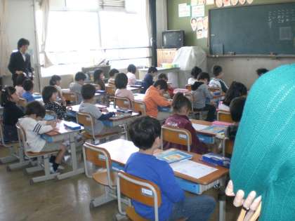 ひらがな「こ」の練習と「うたにあわせてあいうえお」。大きな声で読めました。