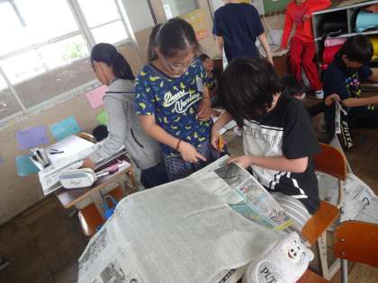 4月28日 家庭科の「思いをかたちに」の学習で生活に役立つ布製品づくりに取り組んでいます。