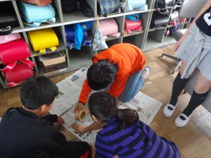 今日は,自分の体にぴったりのエプロンの型紙を作りました。