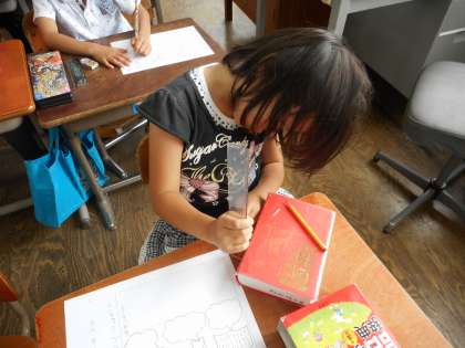 定規を使って,太さや長さをはかったり,中身はどんなことが書いてあるのかなどを調べました。