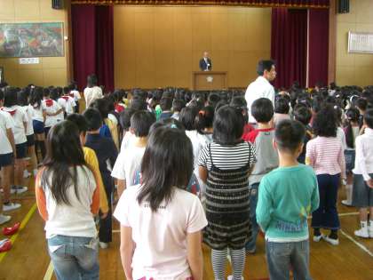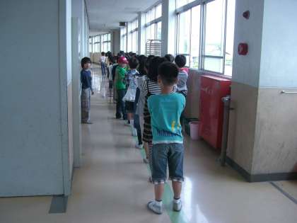 学きゅうだい表さんを先頭にして体育館まで歩いていきます。