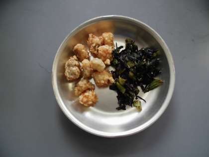 たらのこはくあげ 小松菜とひじきのいためもの とうふの吉野汁 ごはん 牛乳