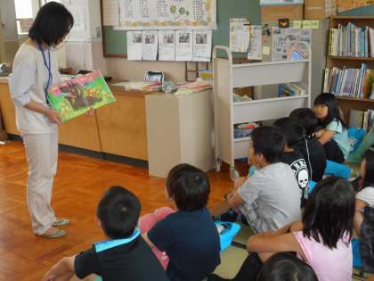 4時間目は図書室に行き,図書支援員の先生に読聞かせをしていただきました。