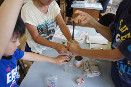 今日の実験は燃やした後の空気の変化を調べる実験。