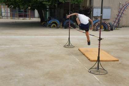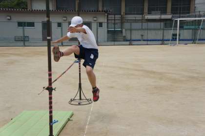 今日も蒸し暑い中,走り高跳びに挑戦中です。
