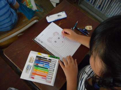 コンパスを上手く使って,動物の顔や,お家などの形づくりをすることができていました。