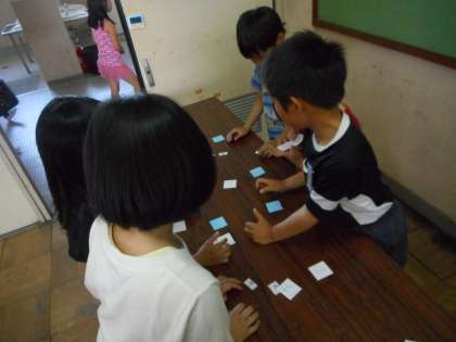 教室の中では,イスとりゲームと言葉づくりをしました!