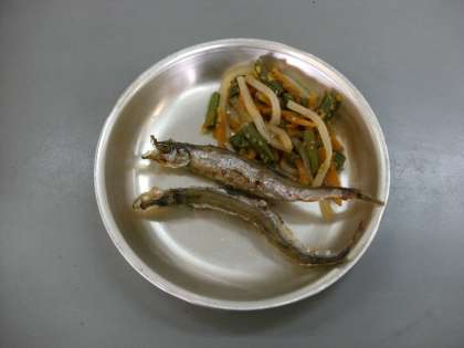 ししゃものから揚げ 野菜のきんぴら キャベツの吉野汁